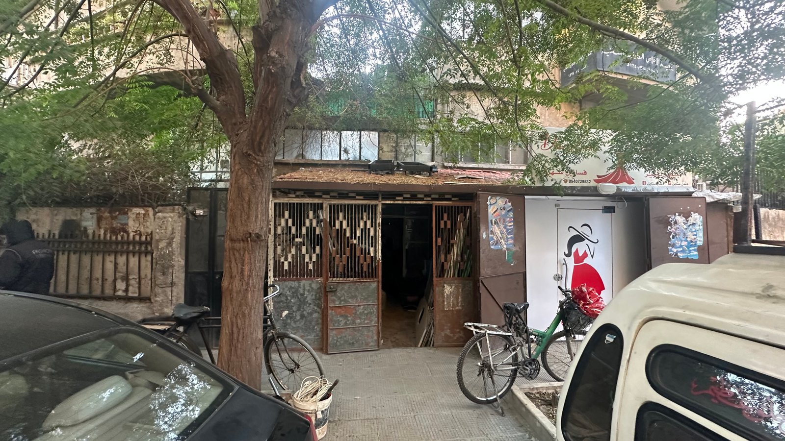 The shop is divided into two adjacent rooms, open to the street. Located in a residential area in Al-Mujtahid.