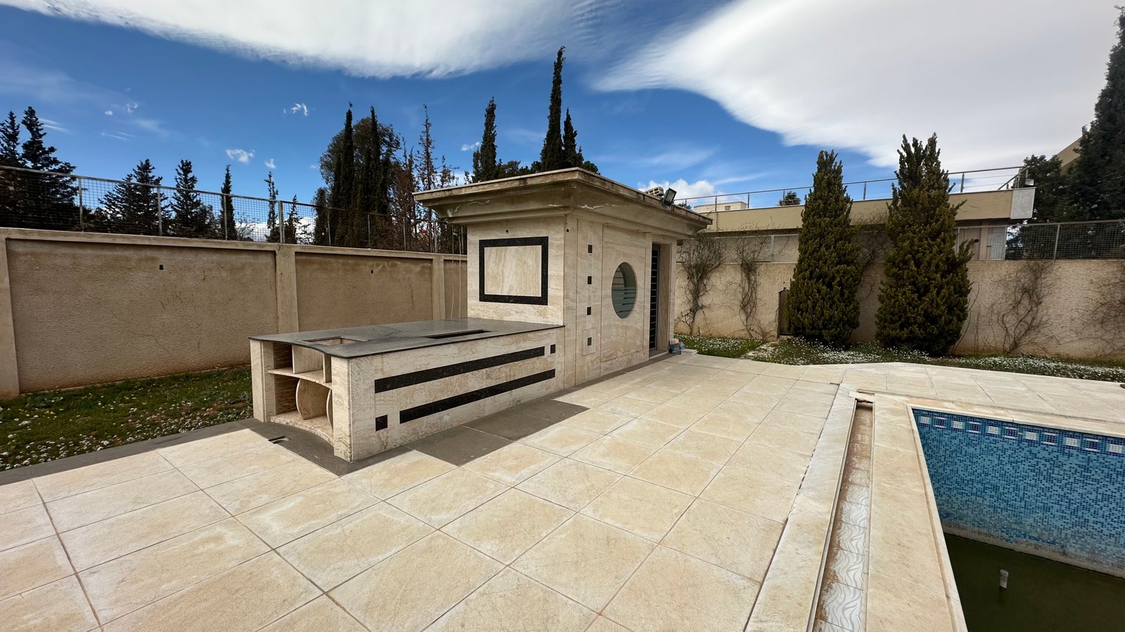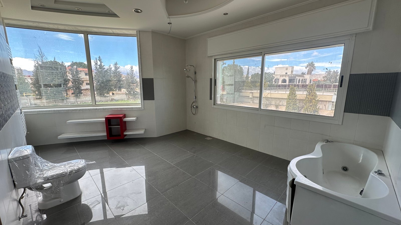 السطح العلوي: حوالي 360 متر مربع منطقة مفتوحة يمكن استخدامها لبناء منطقة معيشة على السطح أو منزل زجاجي شتوي يطل على قمم جبل الشيخ الجميلة جدا ومنطقة جانبية ريفية جميلة. 2 حمام جانبي ومغسلة. يتحمل الأساس بناء طابقين اضافيين لللأستفادة بالمزيد من المساحات