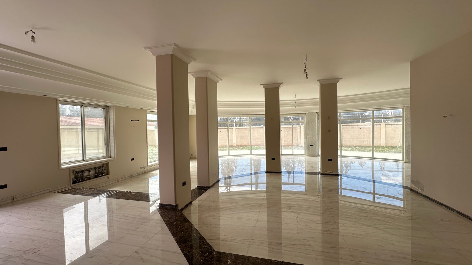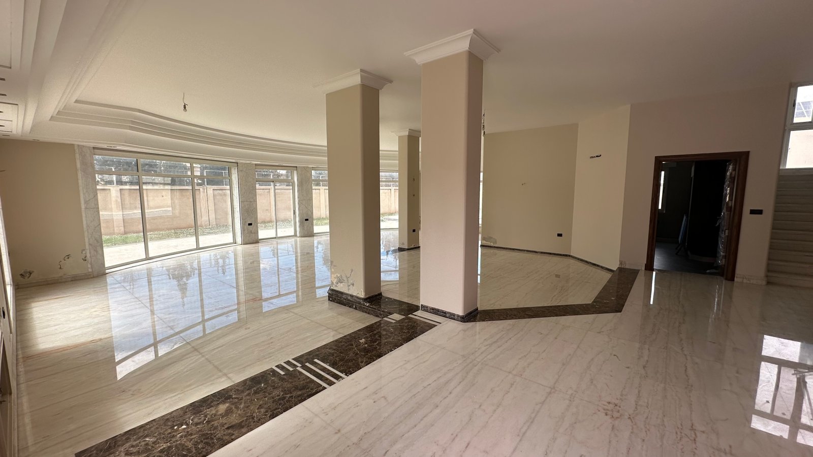 جميع أرضيات الطابق الأرضي والدرج بين الطوابق من الرخام الأيطالي ستراموزا والزجاج والكروم